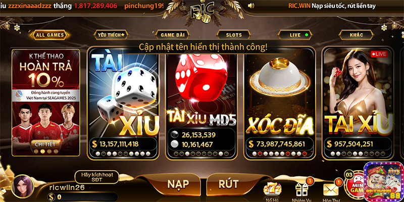 Đến với Ric win nên chơi game đổi thưởng nào?